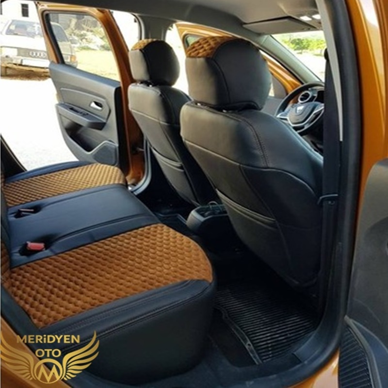 Lüx Araca Özel Dikim Deri Krem Taba Oto Koltuk Kılıfı