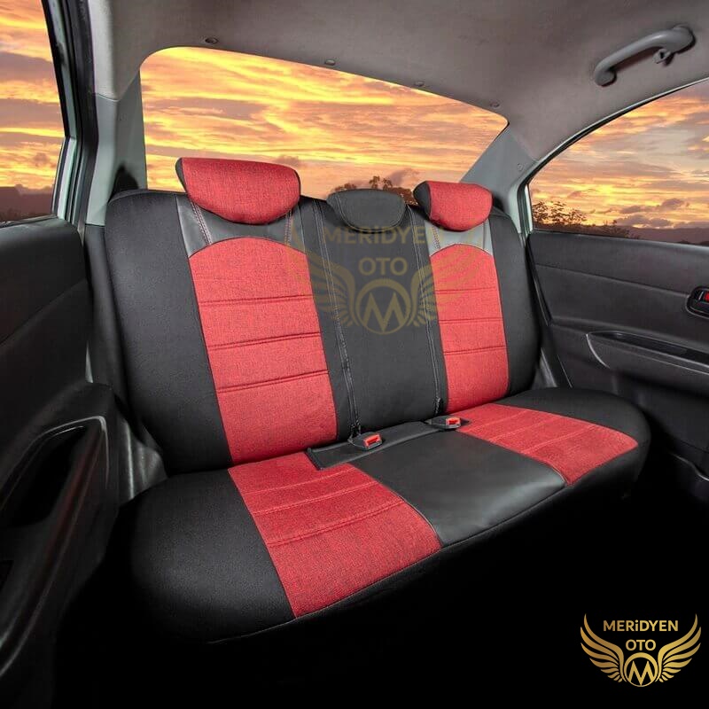 MODERN Keten Kumaş Kırmızı Siyah Deri Koltuk Kılıfı