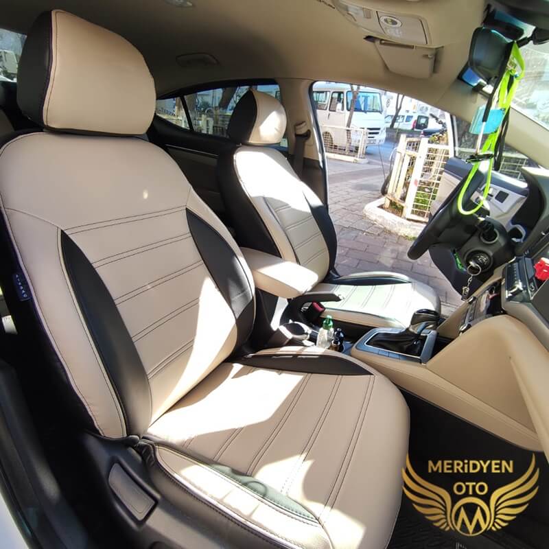 Lüx Araca Özel Dikim Deri Krem Taba Oto Koltuk Kılıfı